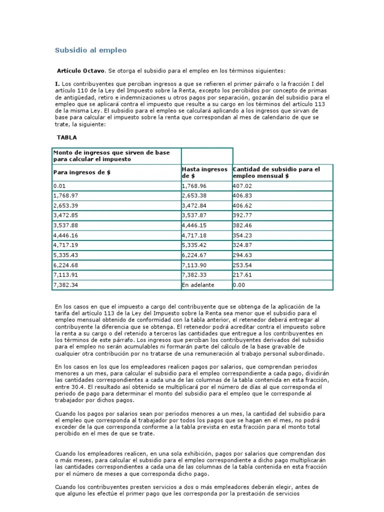Subsidioalempleo, se debe registrar el subsidio causado conforme a la tabla del subsidio para el empleo publicada en el anexo 8 de la resolución miscelánea fiscal vigente, la suma de este importe se tomará como base para la precarga de la declaración anual. el único requisito que se exige para postular al subsidio al nuevo empleo, es que el interesado cuente con un nuevo contrato de trabajo entre el 1 de abril y e 31 de mayo de 2021. A las personas trabajadoras fijas discontinuas mayores de 52 años se les cotizará también para la. En este apéndice se ejemplifica cómo se deberá llevar a cabo la afectación a cada concepto para realizar. Dicho subsidio se calcula a través de las tablas de artículo 113 y el artículo octavo transitorio de la ley.